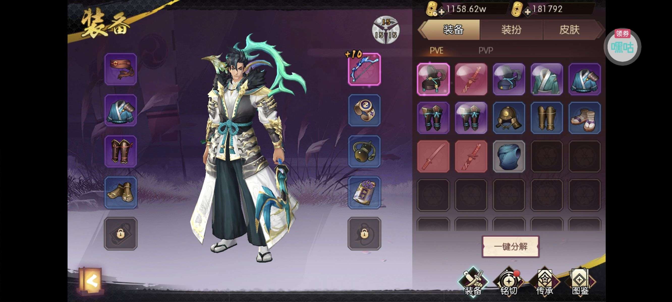 天草装备毕业,4件19装备,一件17,其余全部14。铭砌基本完美