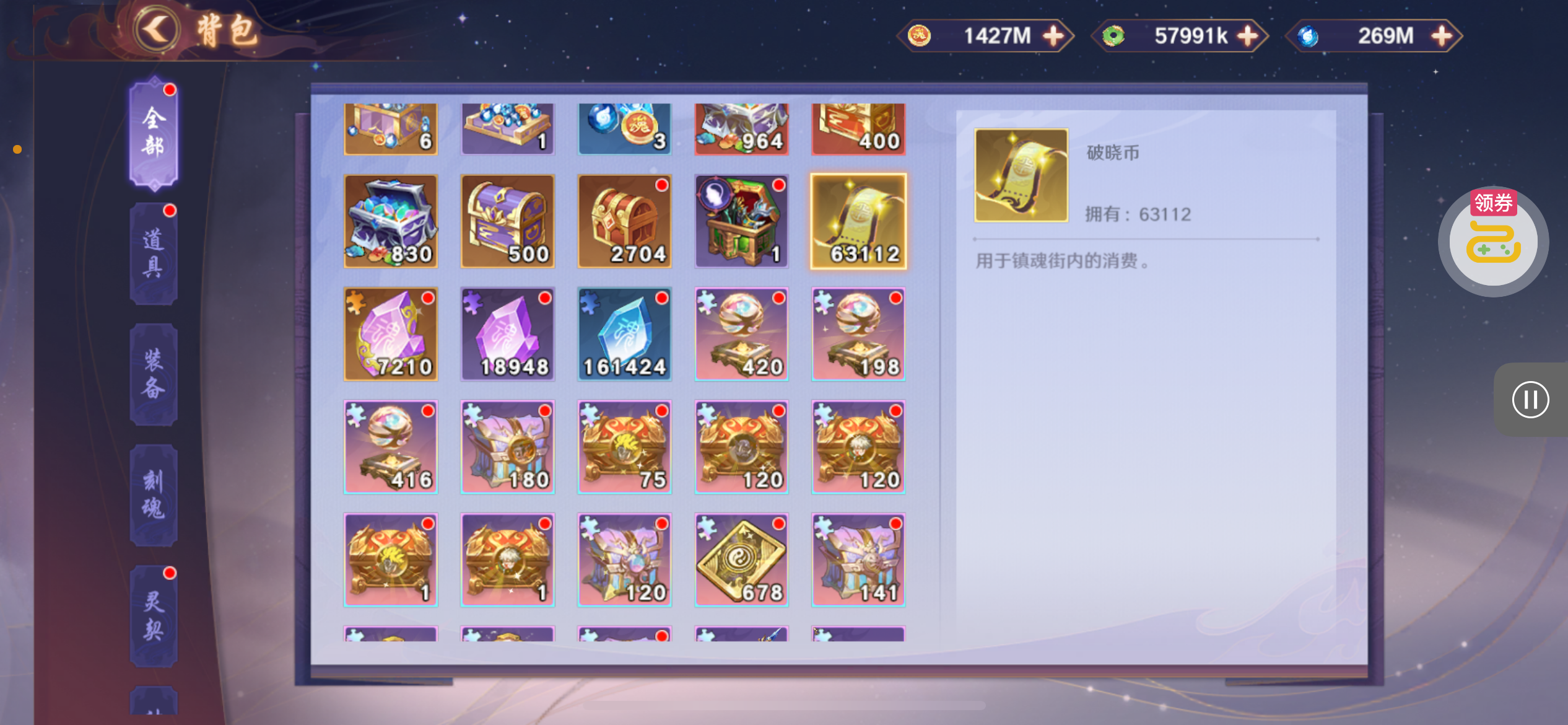 魂晶*888,魂师召唤券*10,武魂水晶*5(每个账号限领一次)
