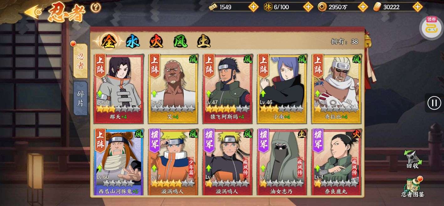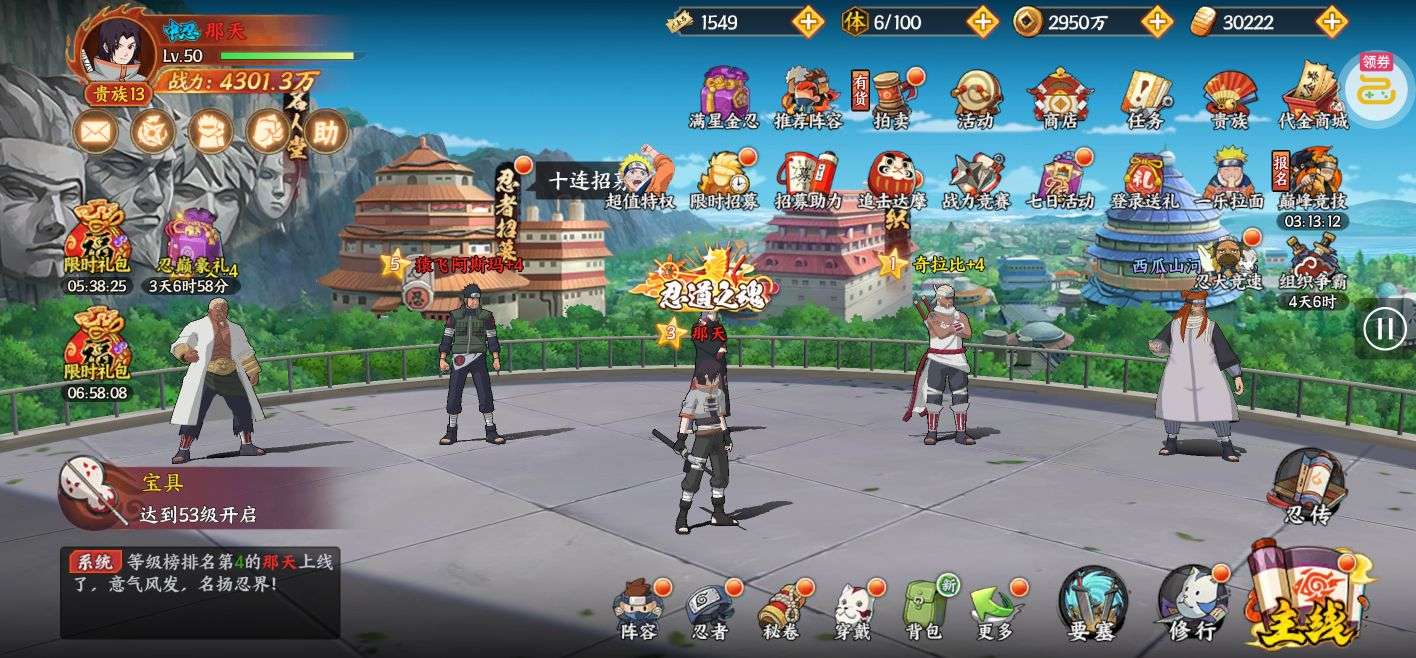 战斗力第一,164亿战斗力。季卡会员,有赤金忍者小南,兜;紫金全套忍者。账号金币有100万。养成材料n+