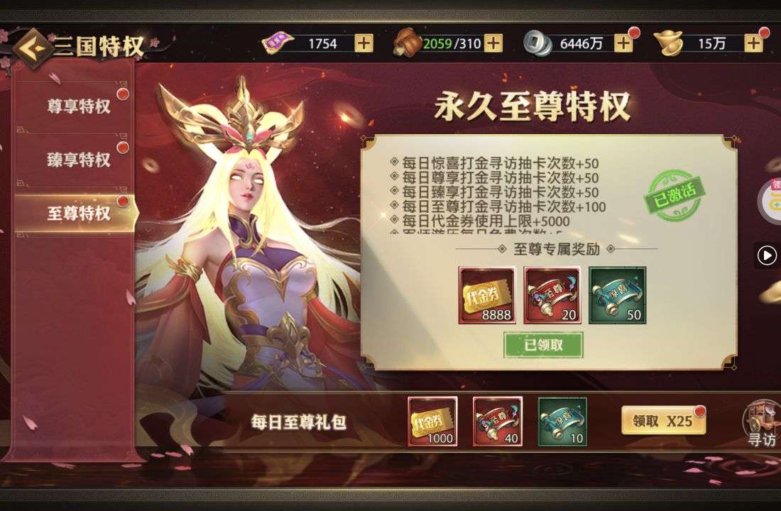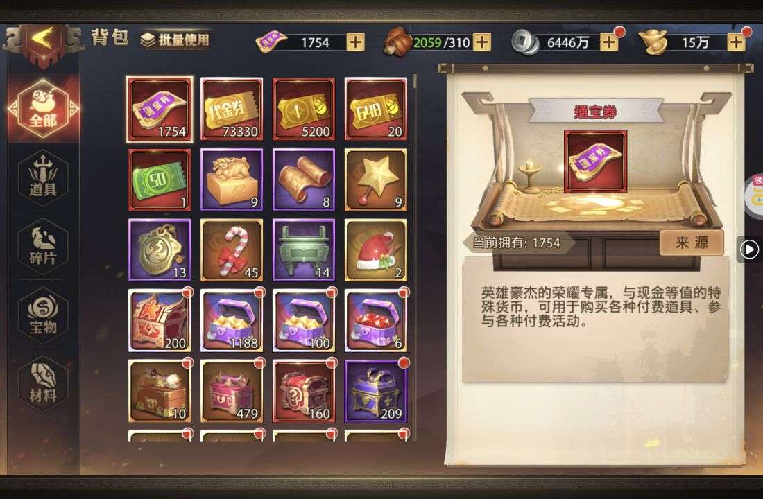 夺宝券*1、比武令*1、5星随机将魂*10(每个账号限领一次)