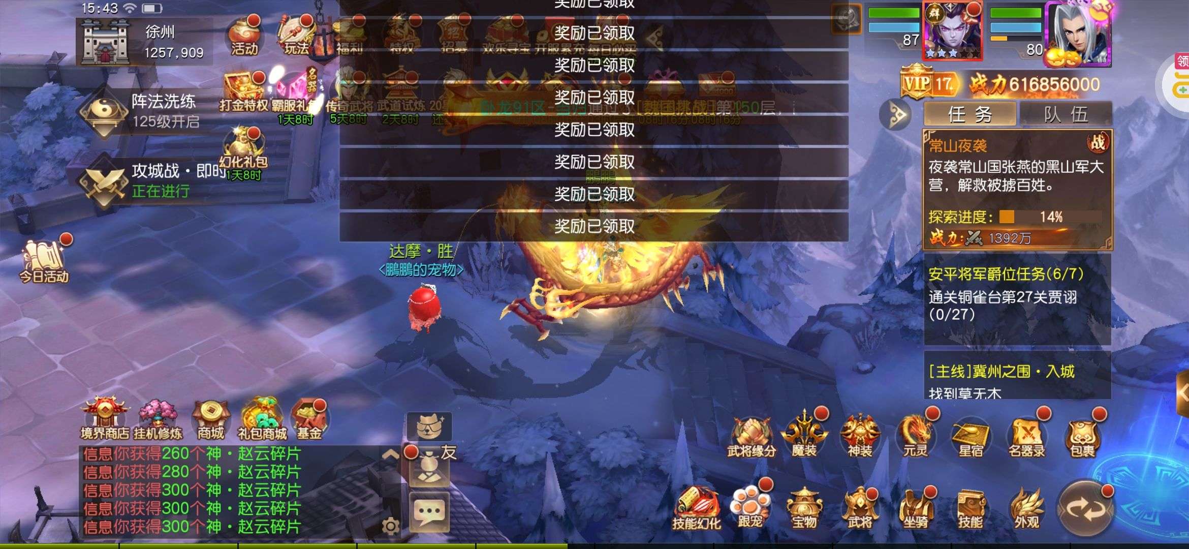 夺宝券*1、比武令*1、5星随机将魂*10(每个账号限领一次)