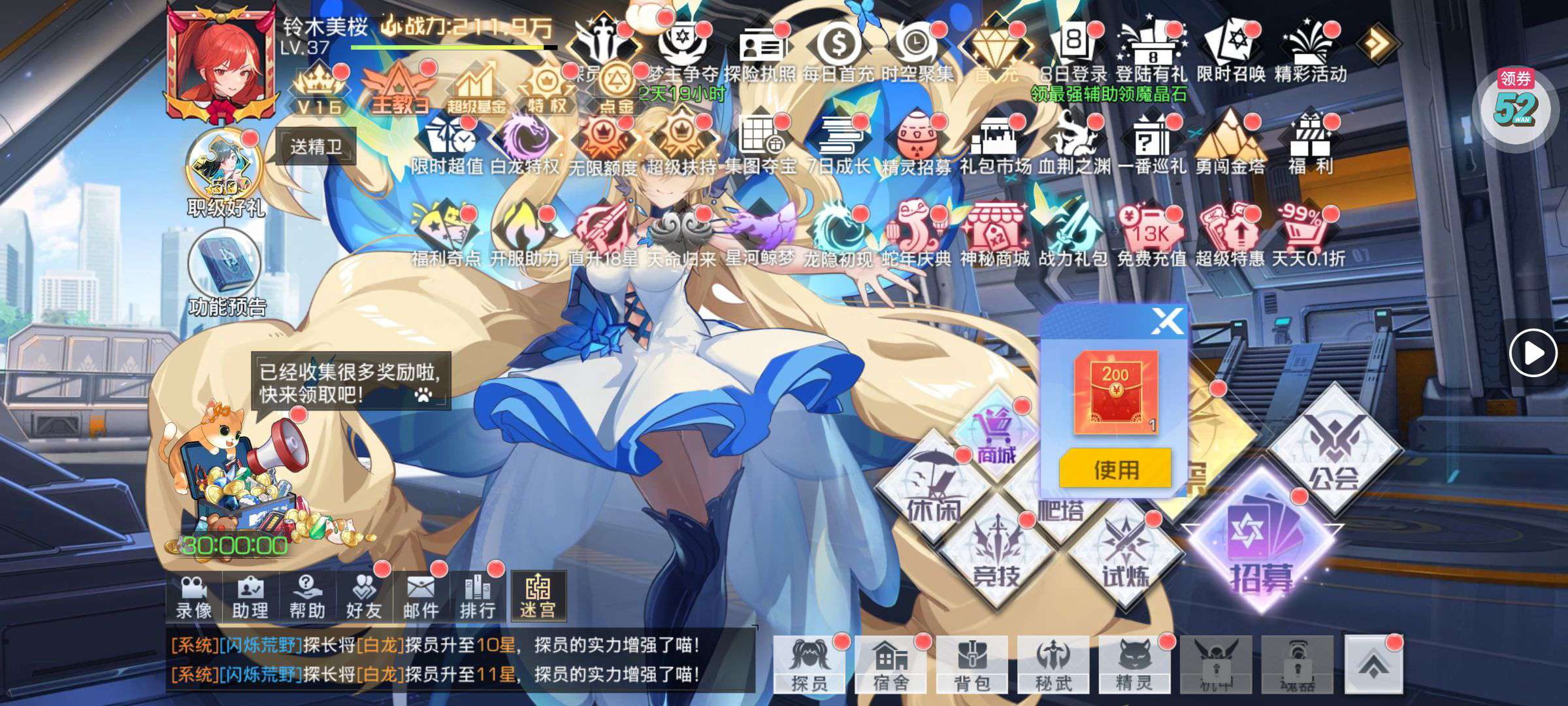 强化药剂*200、钻石招募币*20、金币*50W(每个账号限领一次)
