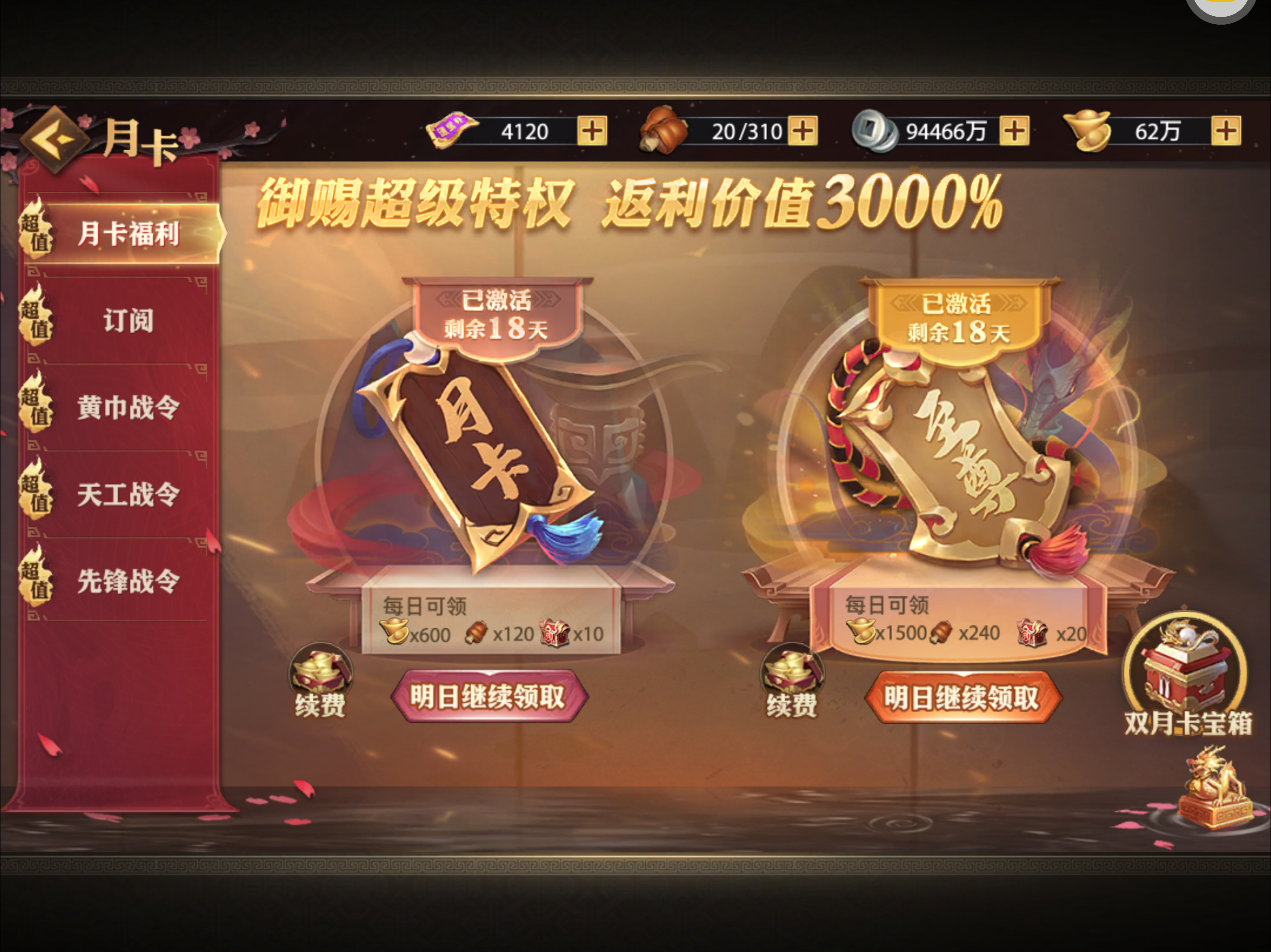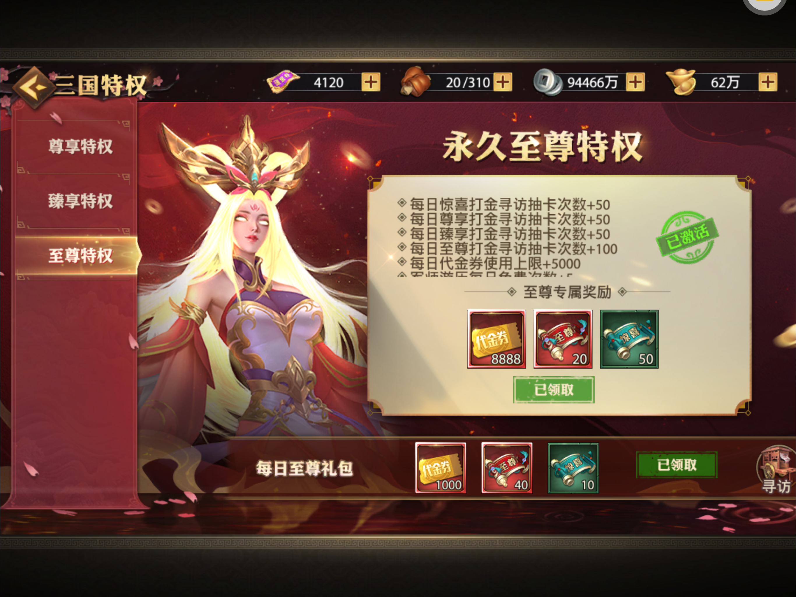 夺宝券*1、比武令*1、5星随机将魂*10(每个账号限领一次)