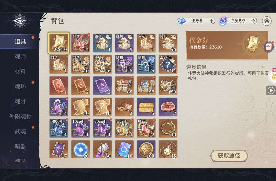 魂晶*888,魂师召唤券*10,武魂水晶*5(每个账号限领一次)