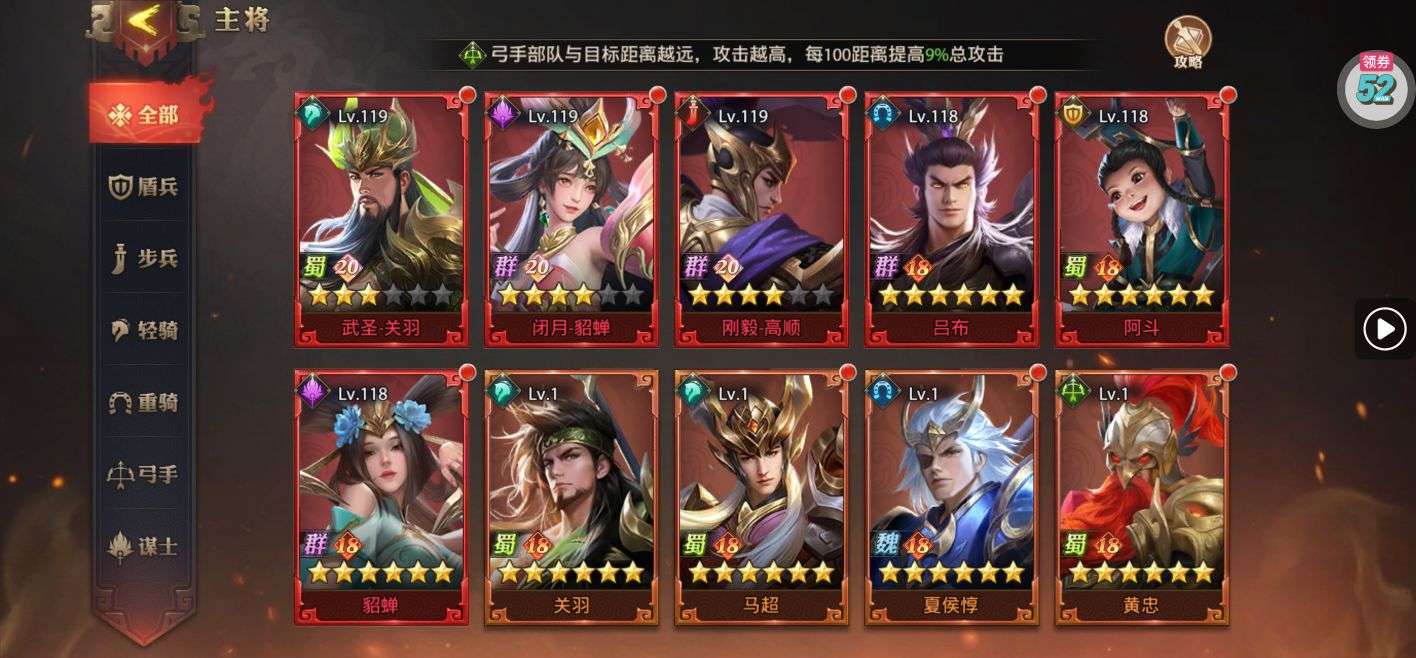 充值比较多,将领很多,可自行搭配